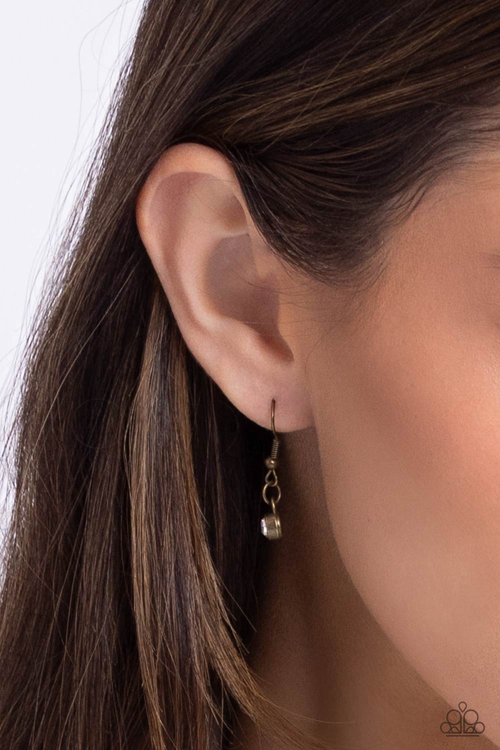 Two classic brass curb chains in varying sizes and a twisted brass chain layer below the collar. Round and cylindrical shimmery brass beads, infused with sparkling rhinestones and stars that scatter light in every direction, slide along the classic brass chain, creating a bold layering statement. Features an adjustable clasp closure.